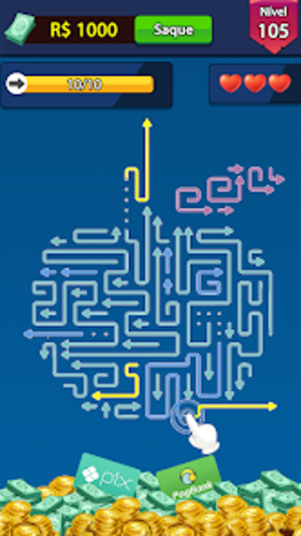 Flechas em Fuga: Dinheiro Real es un juego de rompecabezas disponible en Android, que combina diversión con la posibilidad de ganar dinero real. En este juego, los jugadores deben desenredar flechas en un laberinto sin que se crucen entre sí, lo que pone a prueba su lógica y habilidades de resolución de problemas. Cada nivel superado no solo ofrece satisfacción, sino también recompensas monetarias, ya que el sistema acredita automáticamente un bonus tras completar cada fase.